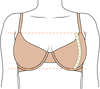 You need to find three points: 1) The under bust point, which sits right below your actual breast, 2) the fullest point of your breast, and 3) the height of where your cup should end - we recommend at armpit level.